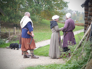 Później skończył się październik i z Zawodzia odlecieliśmy na zimowisko do centrali naszego muzeum. Tam udało się krosno poskładać i uruchomić.Tym etapem prac kierowała Magdalena Greberska, która w czasie kiedy powstawała rama ulepiła gliniane ciężarki o jednakowej wadze około 330 gramów. Następnie przygotowała osnowę i zamocowała ją na wale. Moja działka ograniczyła się do wystrugania półnicielnicy, na której Magda powiązała pętelki trzymające część osnowy, po czym zaczęła tkać.